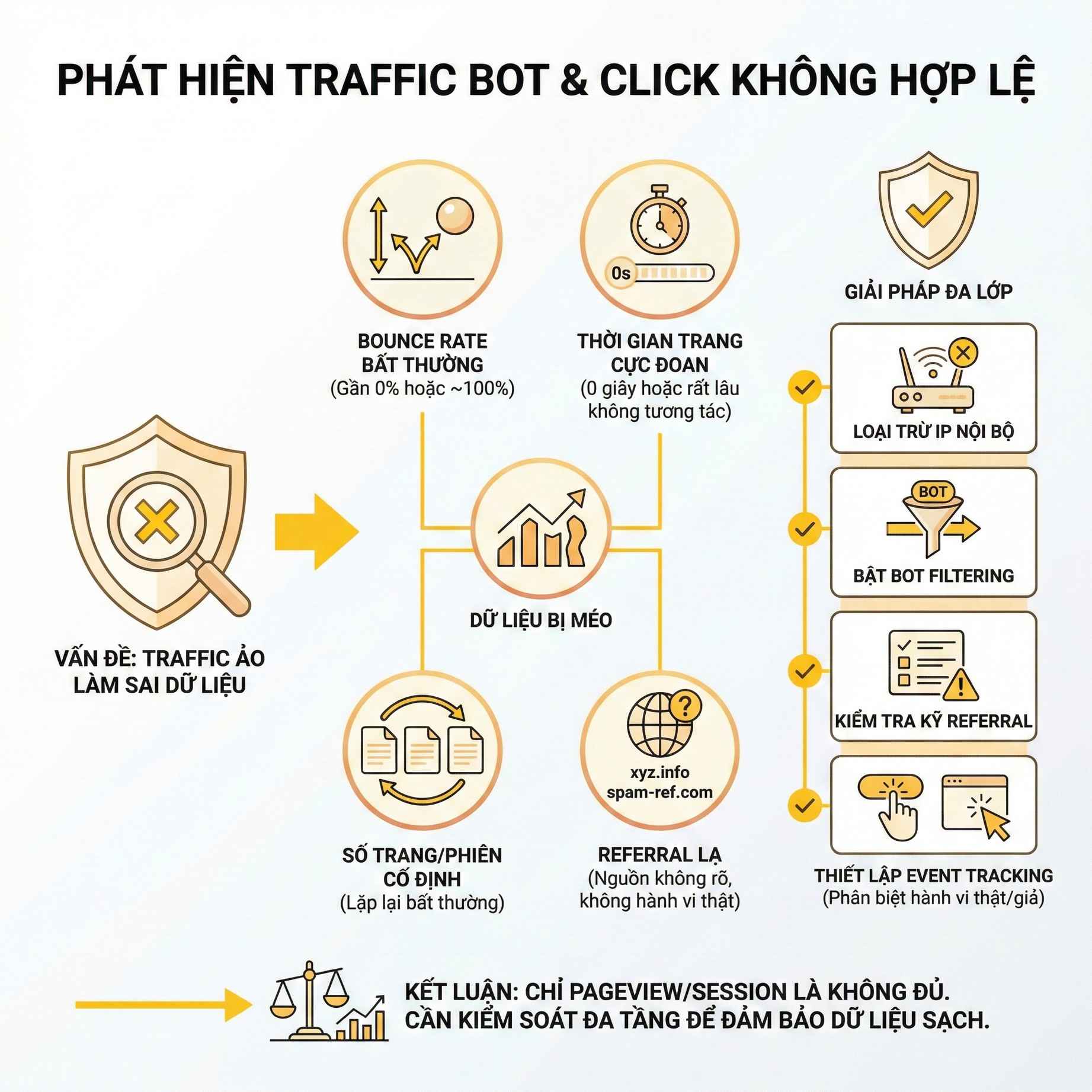 Với website lớn, nên đối chiếu thêm server log để xác nhận bot vs user