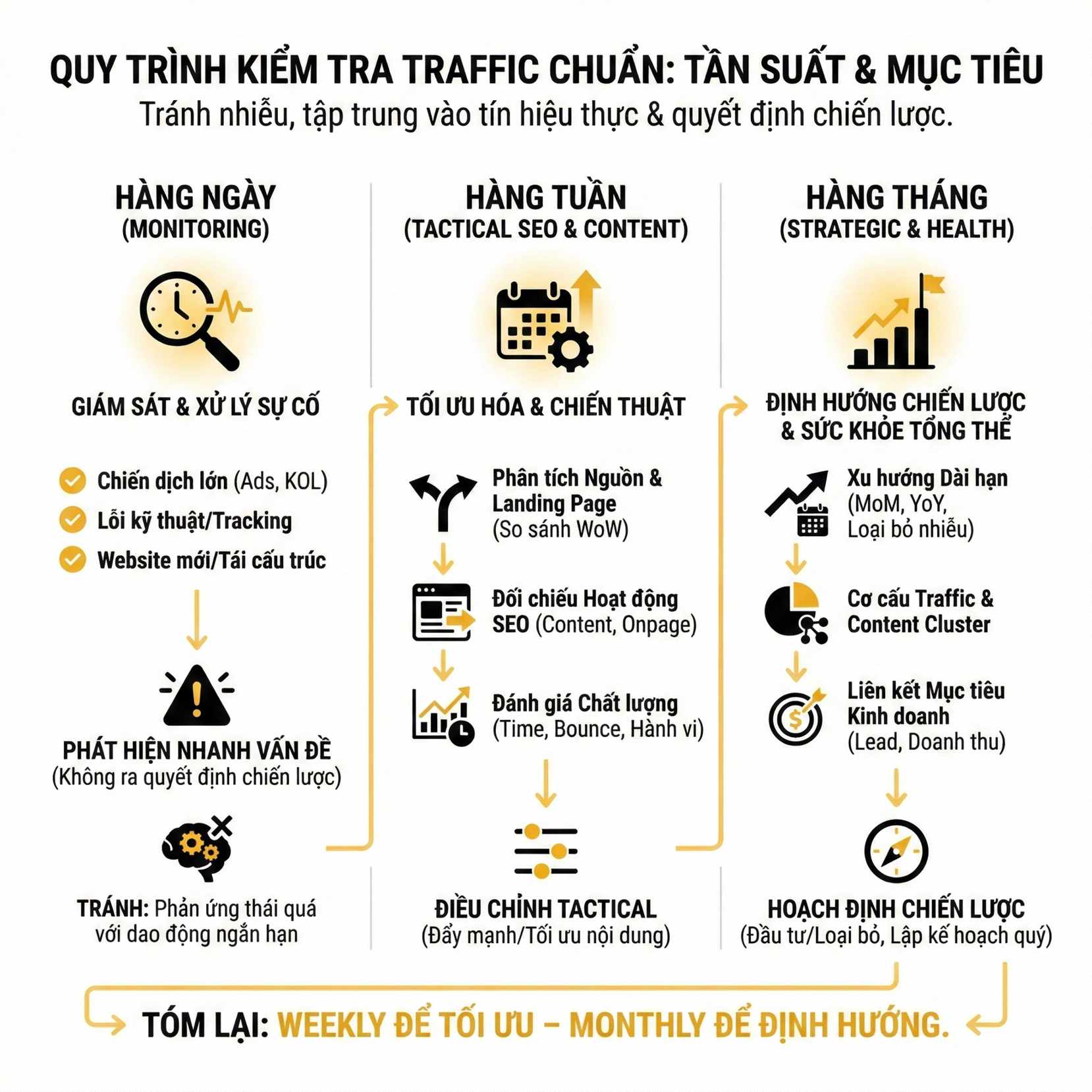 Nói cách khác, weekly traffic giúp bạn tối ưu – monthly traffic giúp bạn định hướng.